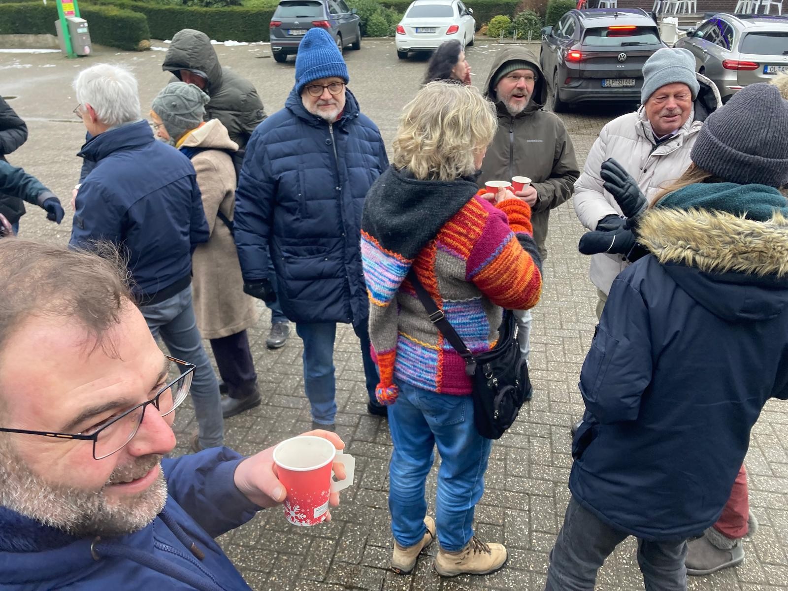 Mit Glühwein stärkten sich die aus ganz Niedersachsen angereisten Parteifreunde, bevor sie zum Spaziergang auf dem Deich an der Talsperre aufbrachen.